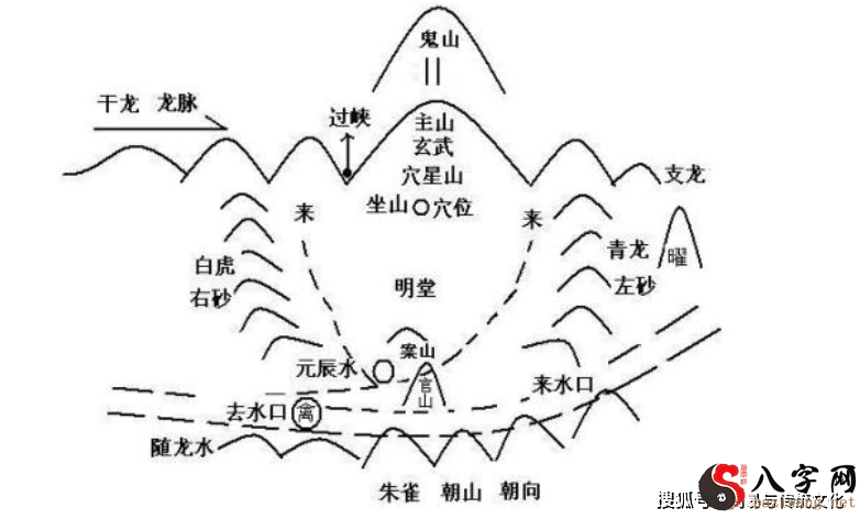 重视自然地理局势,关键以“龙、穴、砂、水、向”论凶吉。