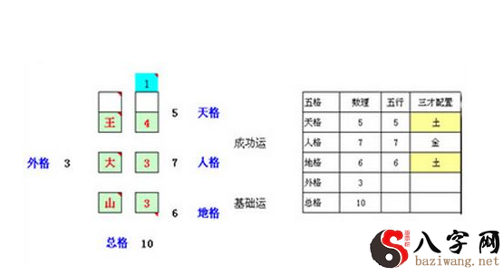 这就是中国古时候姓名学的最主要的三才五格的一个组成的那么一个方式。